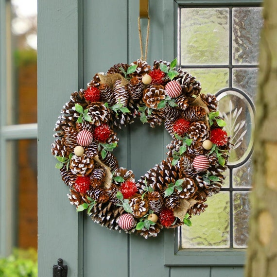 Winter Wreath Candy Stripe Baubles Frosted Finish Decorative Etsy Ireland